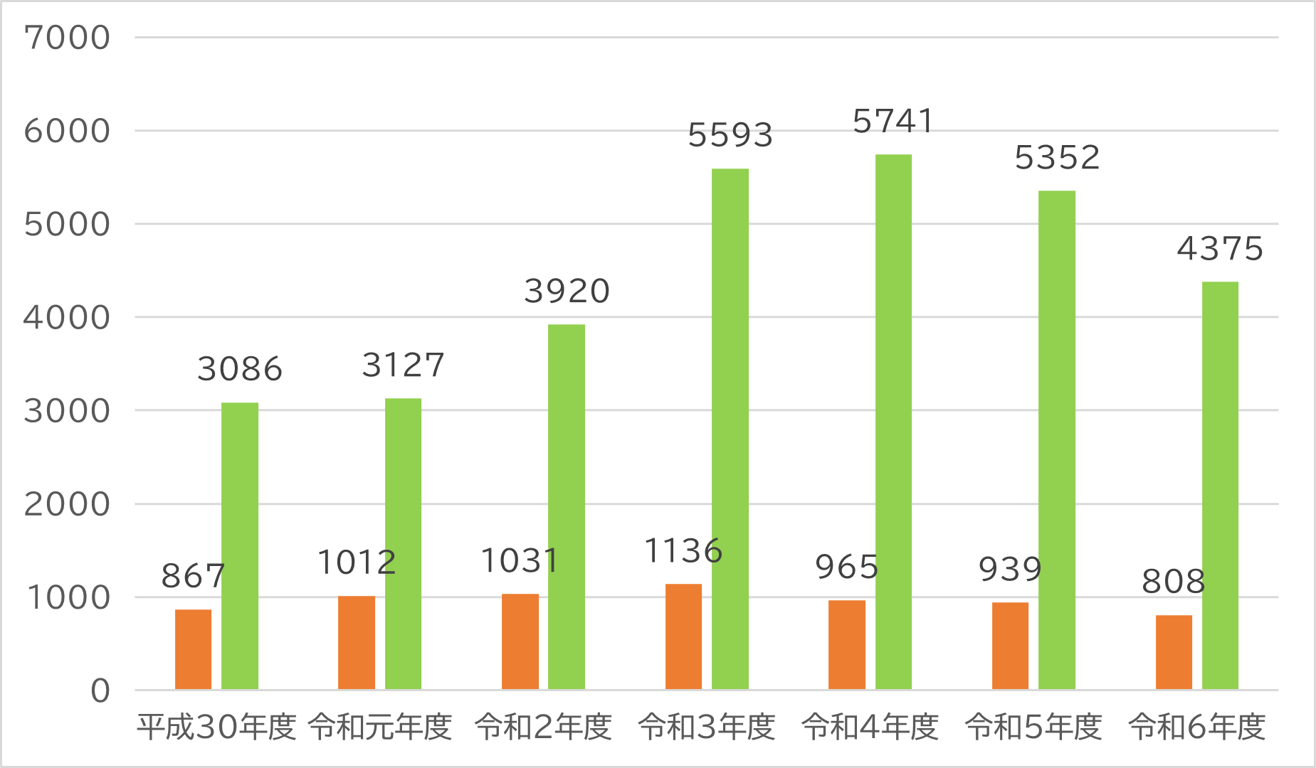 | 件数 | 4,951件 | 6,729件 | 6,706件 | 6,291件 | 5,183件 |